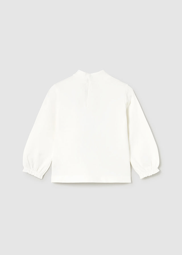 Camiseta de manga larga para bebé con puños elásticos. Cuello semicisne. Cierre con botones a presión en la parte posterior. Suave tejido de algodón elástico. Elementos de adorno: serigrafía (print).Color blanco.