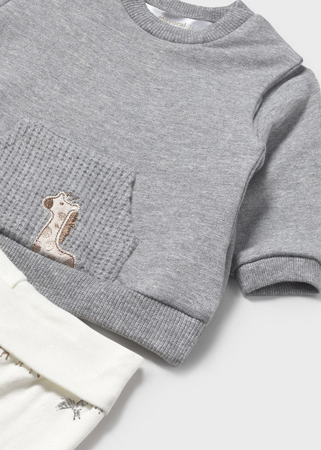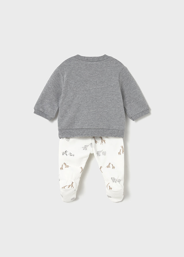 Conjunto de dos piezas para recién nacida compuesto por una sudadera y polaina a juego.Color gris.