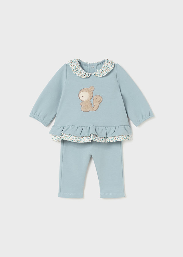 Conjunto de pantalón y sudadera con volante.Color verde agua.