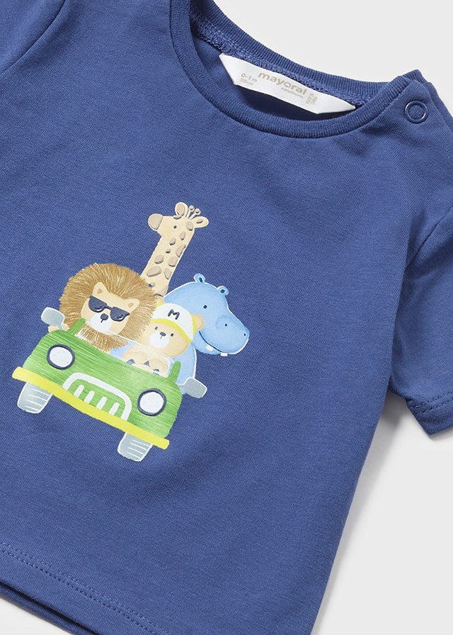 Conjunto de camiseta y pantalón de lino para recién nacido, en tonos azules y verdes.