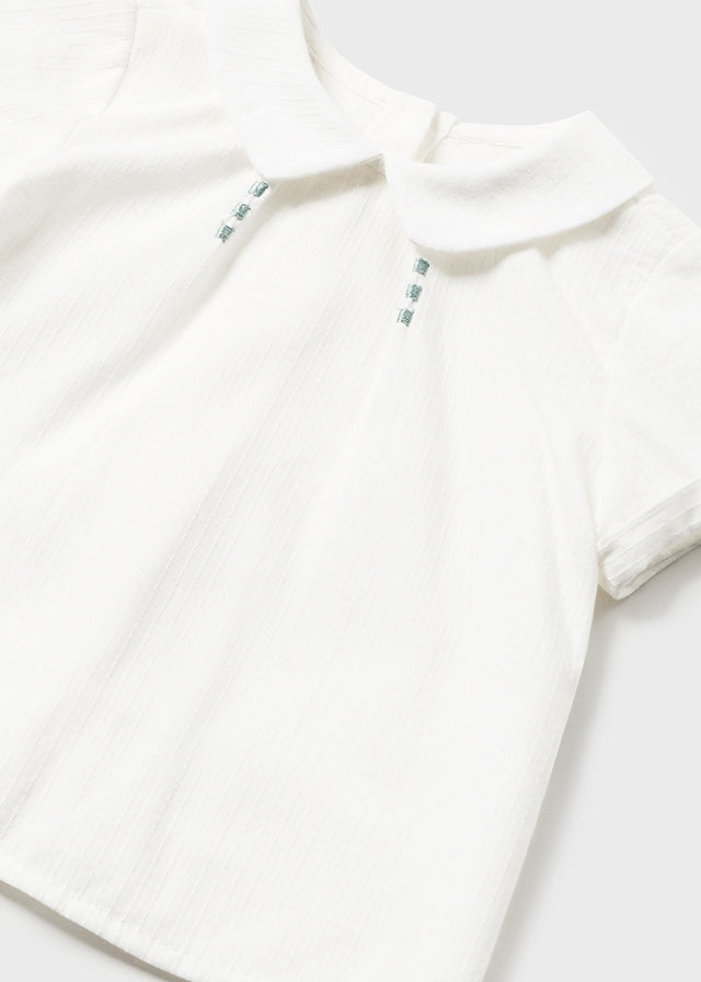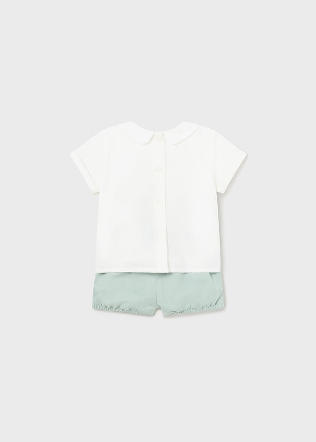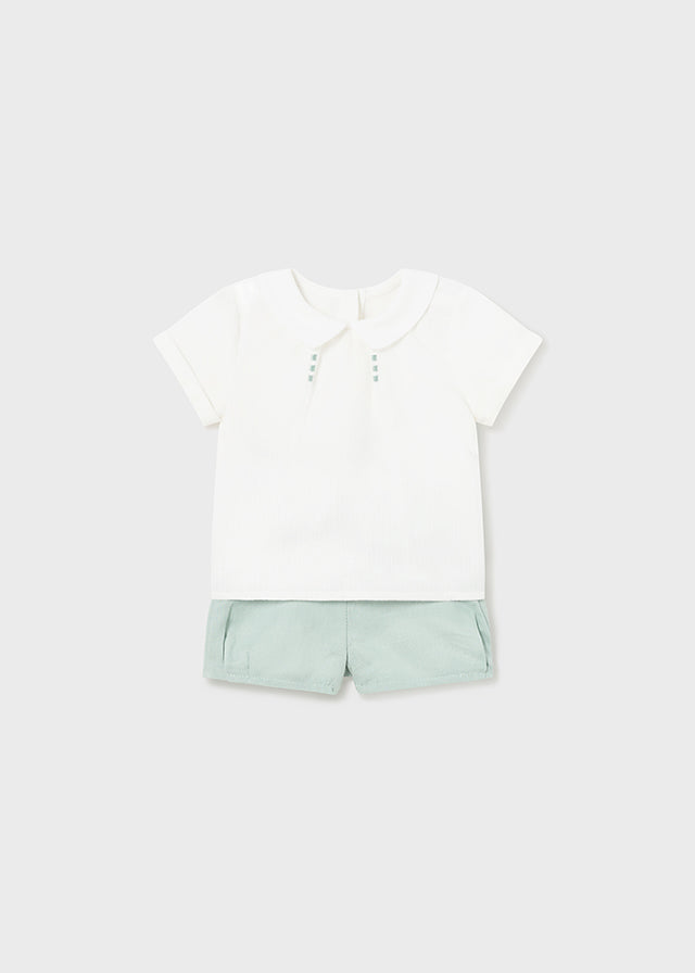Conjunto de pantalón corto en tono verde y camisa manga corta blanca para recién nacido.
