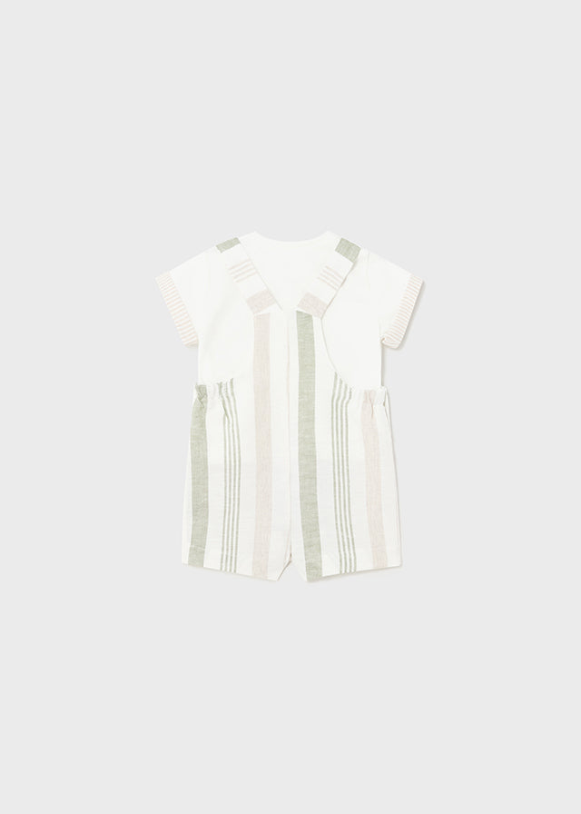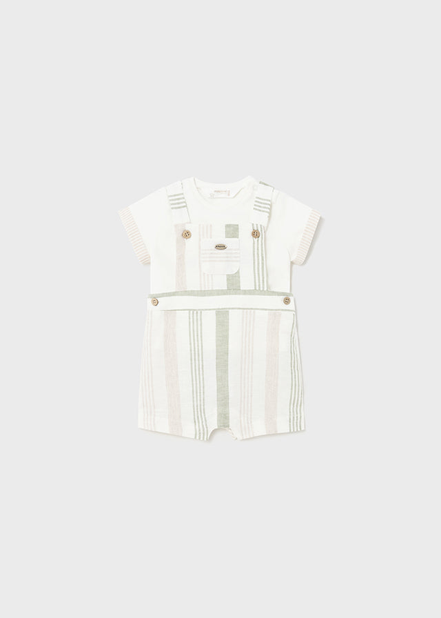 Conjunto de peto y camiseta para recien nacido, color beig y verde.