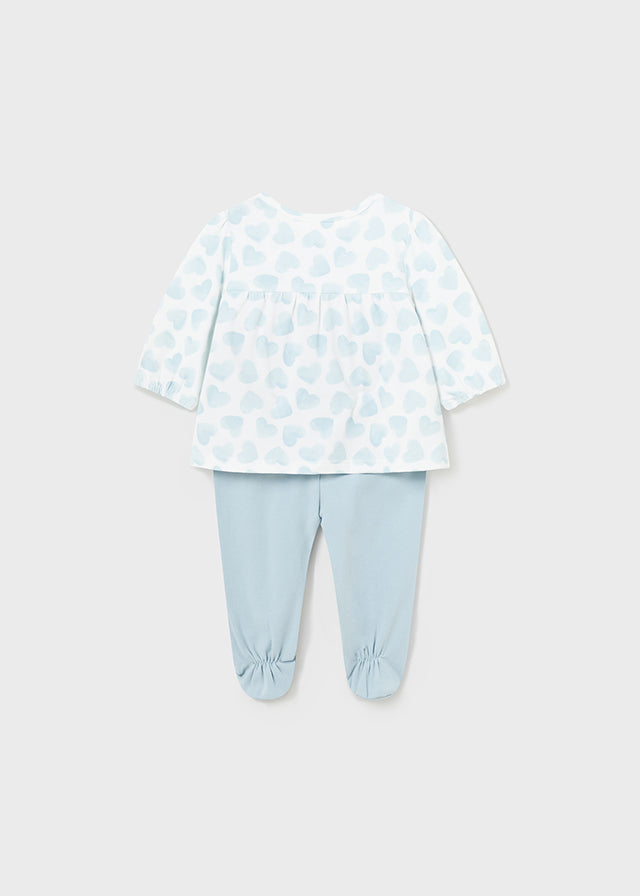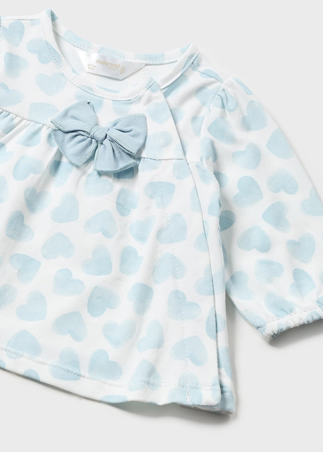 Conjunto de dos piezas de camiseta de manga larga estampada con lazo y polaina en tonos celestes,para recién nacido.