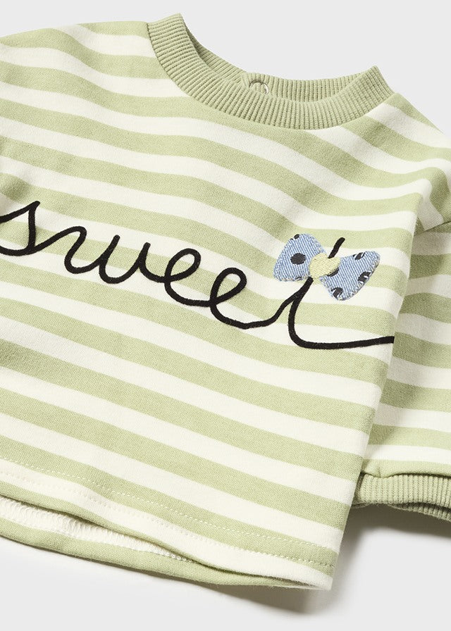 Chandal de Bebe niña ,color verde consta de 3 piezas, sudadera con capucha, camiseta manga larga y pantalón.