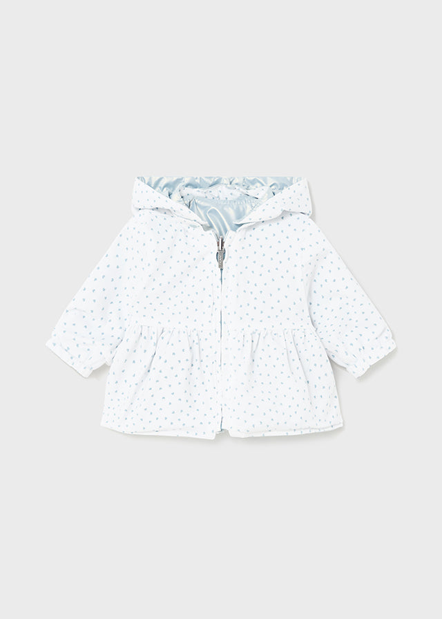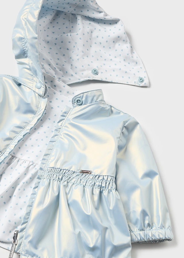 Cortaviento reversible con capucha demontable.Color Celeste y blanco.