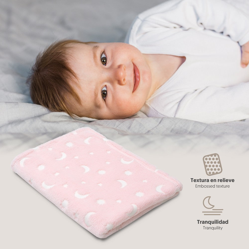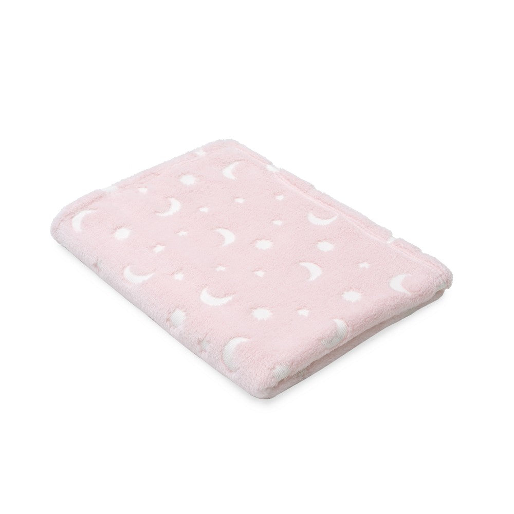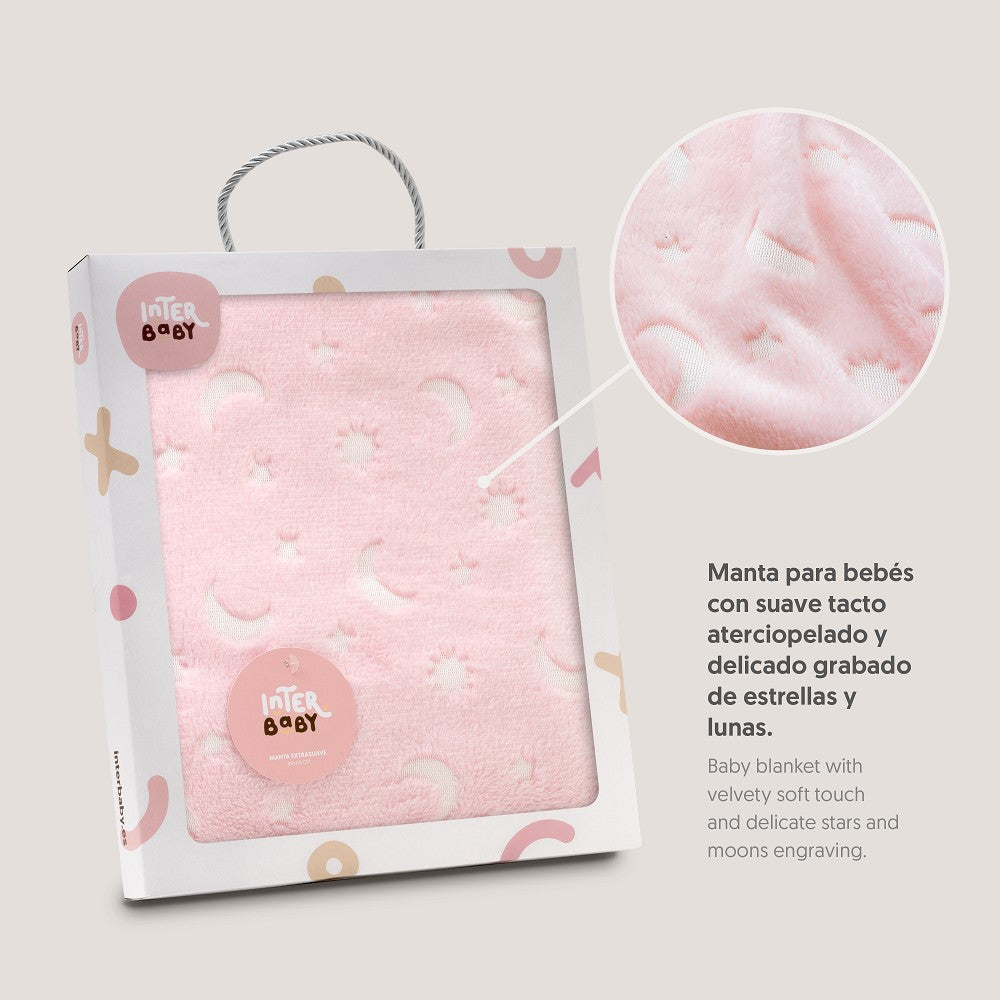 MANTA GRABADA LUNA ESTRELLAS ROSA