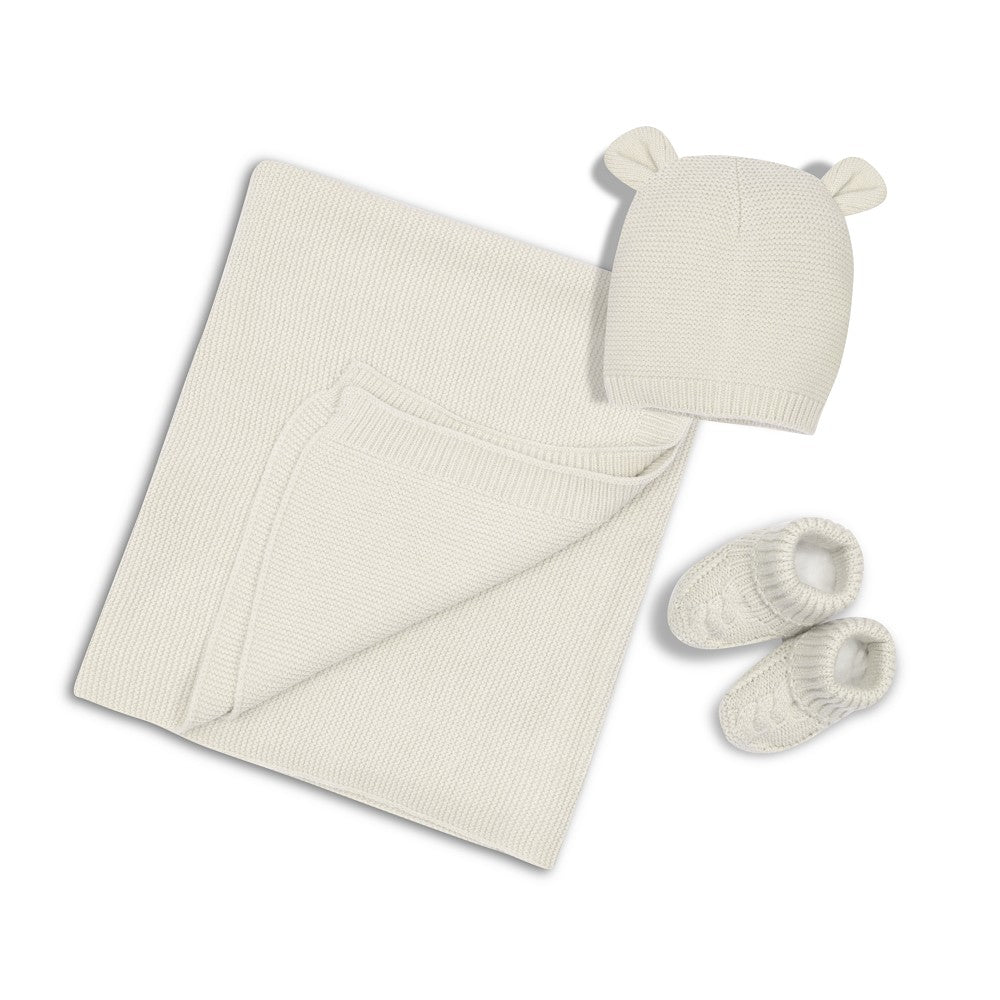 Set 3 piezas: toca, gorro y patucos (0-6 meses). color beig.