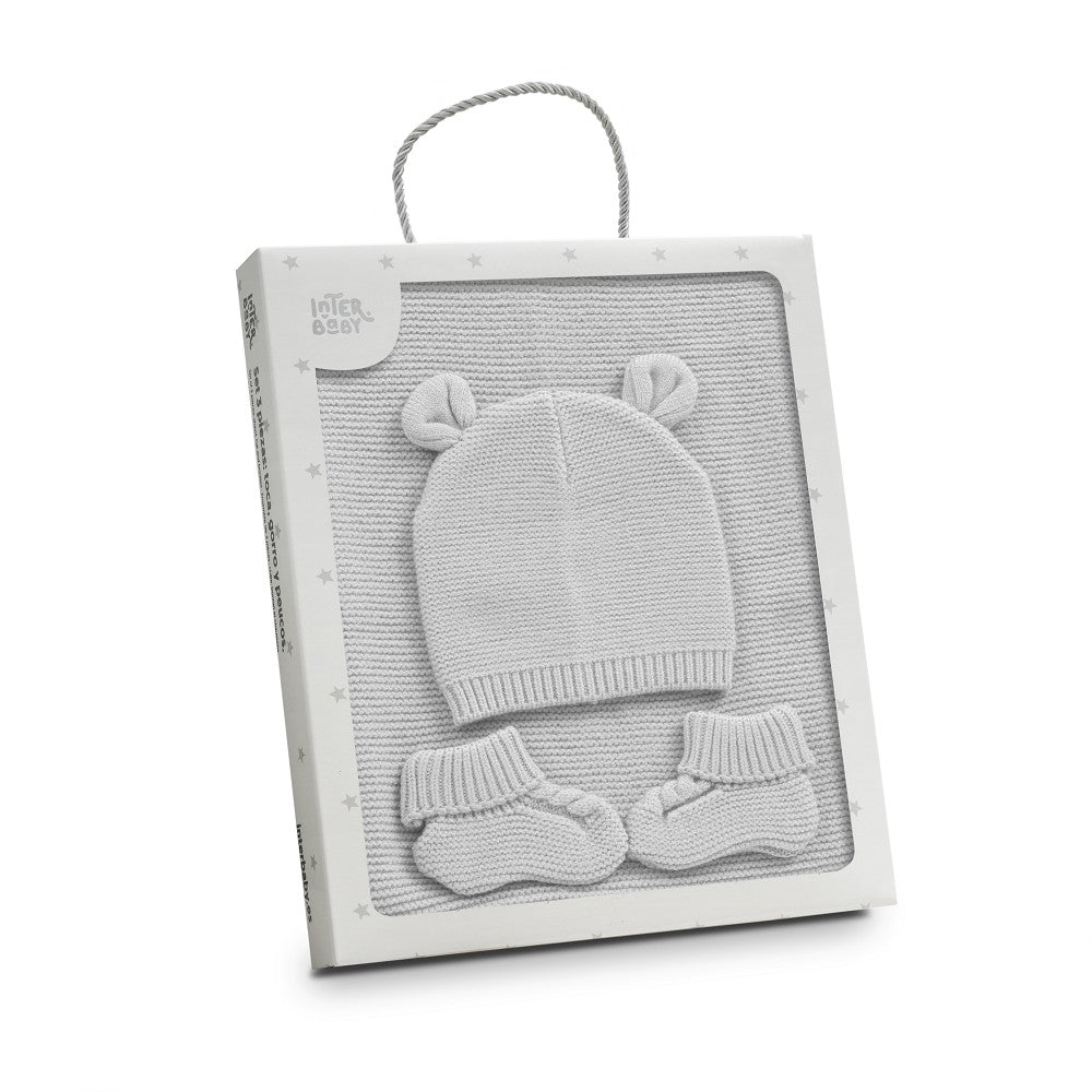 Set 3 piezas: toca, gorro y patucos (0-6 meses). color gris.