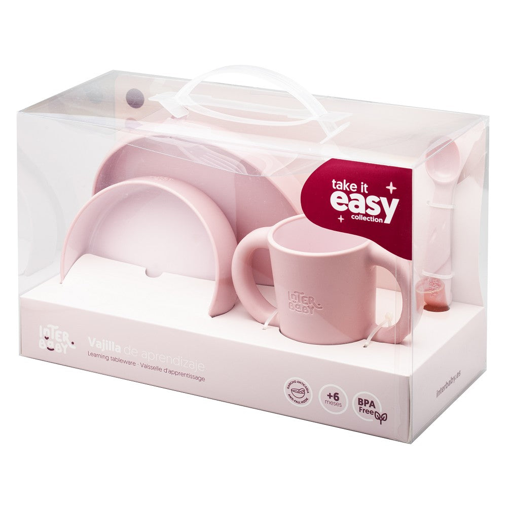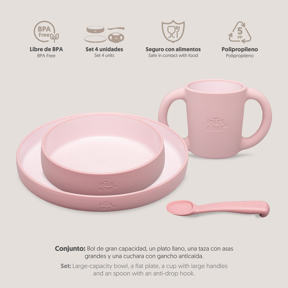 Vajiila de aprendizaje apata para microondas y lavavajillas. Apta para temperaturas desde los -20ºC a los 120ºC. Contiene Plato llano, bol, cuchara y taza.