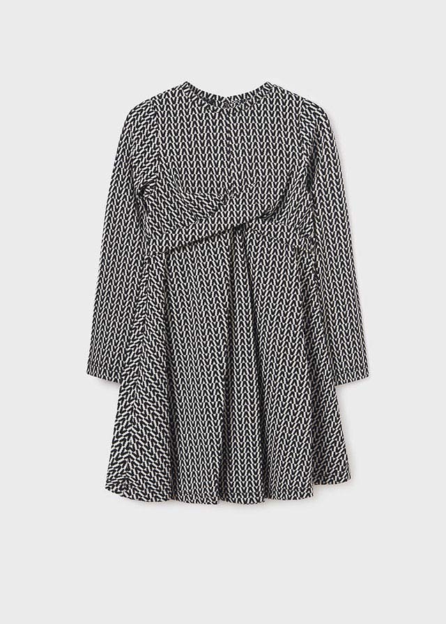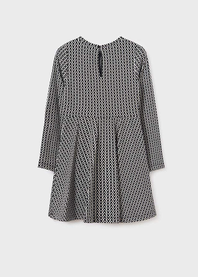 Este vestido de punto jacquard negro es la elección perfecta para cualquier ocasión. Disfruta de su corte moderno, además de su diseño versátil y su estilo sofisticado. Una prenda moderna para tu armario.